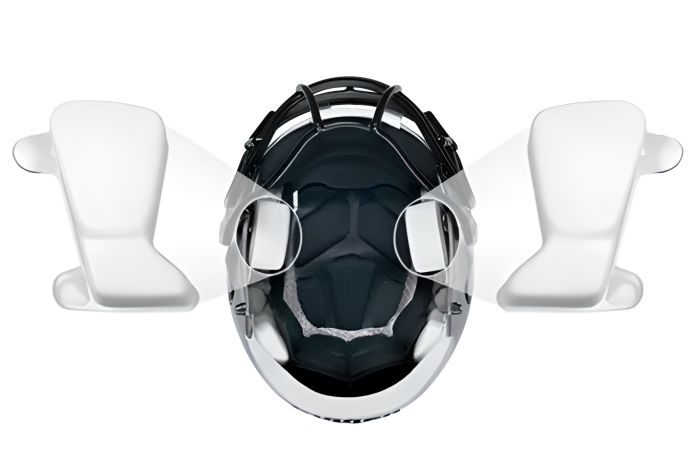 Projetada para ser encaixada na parte interna do capacete, com o intuito de proteger o usuário contra impactos laterais.
